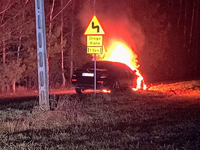 W czwartek, 5 grudnia 2024 roku, o godzinie 20:33, strażacy z Ochotniczej Straży Pożarnej w Broku zostali zadysponowani do pożaru samochodu osobowego marki Mercedes w miejscowości Kaczkowo Stare, na drodze powiatowej 2638.