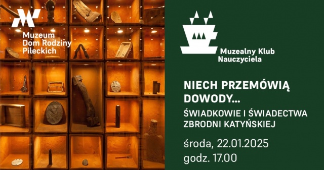Już w najbliższą środę, 22 stycznia 2025 o godz. 17:00 w Muzeum Domu Rodziny Pileckich odbędzie się kolejne spotkanie w ramach Muzealnego Klubu Nauczyciela pt. "Niech przemówią dowody... świadkowie i świadectwa Zbrodni Katyńskiej". Wydarzenie stanowi doskonałą okazję do pogłębienia wiedzy na temat jednej z najtragiczniejszych kart w historii Polski oraz do poznania nowatorskich metod edukacji historycznej i upamiętniania ofiar.