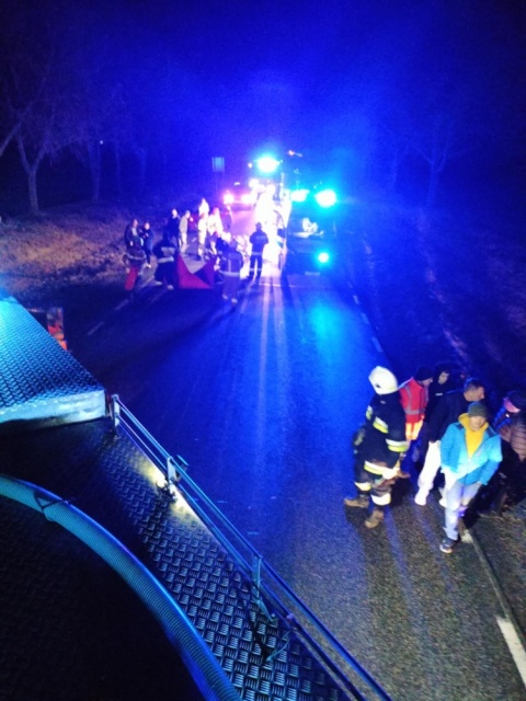 Strażacy udzielili kwalifikowanej pierwszej pomocy, zabezpieczyli miejsce zdarzenia oraz oświetlali teren, umożliwiając pracę pozostałym służbom.