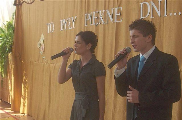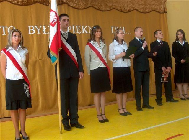 Tegoroczna uroczystość pożegnania maturzystów połączona była z apelem związanym z rocznicą uchwalenia Konstytucji 3 Maja, przygotowanym przez młodzież pod kierunkiem pana Kazimierza Reizera. Pięknie śpiewali pani Karolina Rozumek i Artur Michalak, z układem tanecznym wystąpiły dziewczyny z grupy pani Doroty Smosarskiej. Gościliśmy pana Tadeusza Staniaszka, dyrektora Powiatowego Zespołu ds Obsługi Jednostek Oświatowych. Ładnie było i troszkę smutno...