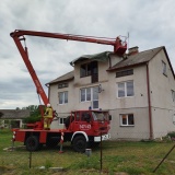 Po przybyciu na miejsce strażacy zastali palącą się maszynę budowlaną. Działania ratownicze rozpoczęto od zabezpieczenia miejsca zdarzenia dla zapewnienia bezpieczeństwa zarówno strażaków, jak i osób postronnych. Następnie druhowie przystąpili do gaszenia pożaru, podając dwa prądy wody w natarciu na objęty ogniem pojazd.