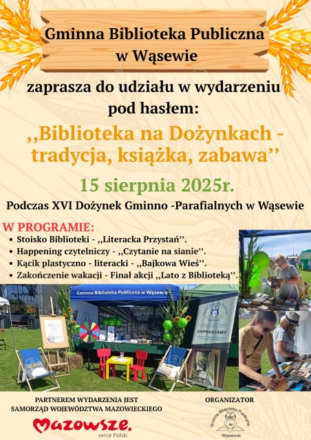 Dożynki w Wąsewie to nie tylko czas na wspólne świętowanie plonów ziemi, ale także świetna okazja, by poznać bogatą ofertę kulturalną i edukacyjną Gminnej Biblioteki Publicznej. Organizatorzy zapewniają, że będzie to wydarzenie pełne radości, śmiechu, a także chwil refleksji i wyciszenia.