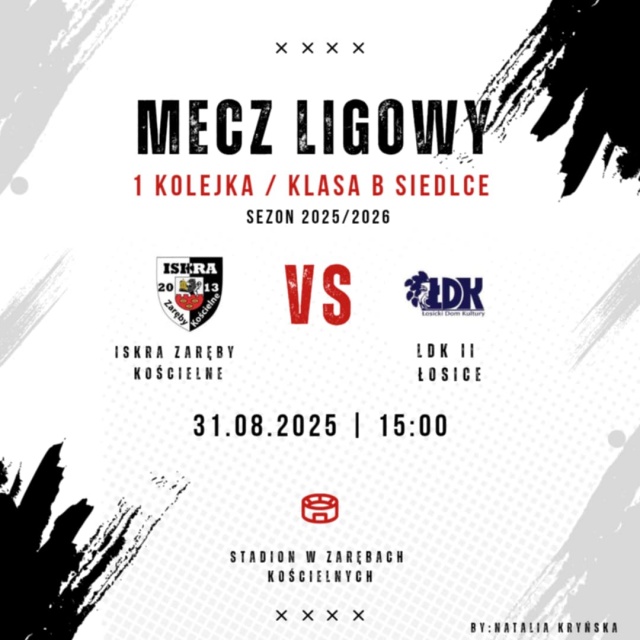 Mecz Iskra Zaręby Kościelne - ŁDK II Łosice odbędzie się 31 sierpnia 2025 o godz. 15:00. Miejmy nadzieję, że gospodarze spotkania rozpoczną sezon od zwycięstwa.