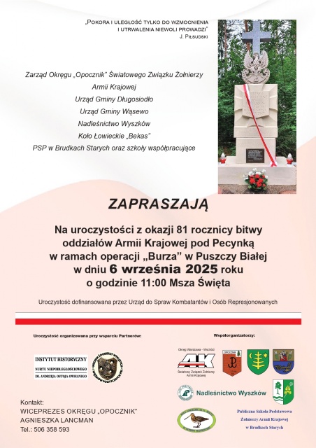 Tegoroczne uroczystości w Pecynce rozpoczną się o godz. 12:00 mszą polową, po której przewidziano hymn narodowy, apel pamięci, wręczenie odznaczeń, złożenie wieńców oraz występ artystyczny uczniów z Brudek Starych. Zwieńczeniem spotkania będzie wspólny posiłek - tradycyjna żołnierska grochówka. Wszystko to stanowi nie tylko hołd dla poległych, ale także ważną lekcję historii dla kolejnych pokoleń.