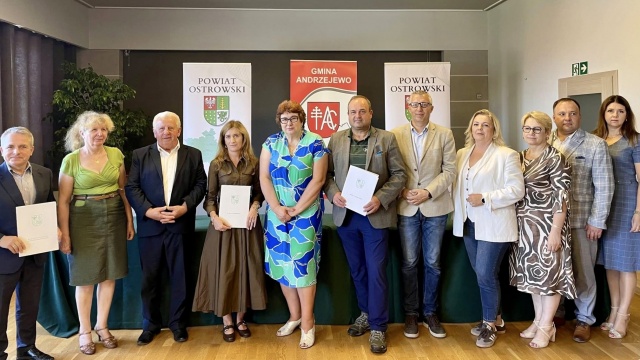 Dokument sygnowali przedstawiciele władz powiatu ostrowskiego - starosta Jerzy Bauer, wicestarosta Bartłomiej Pieńkowski oraz skarbniczka Małgorzata Konrad - a także wójt gminy Andrzejewo Beata Ponichtera i Mirosława Zbrzeźniak. Wykonawcą zadania zostało przedsiębiorstwo Pone Viam z Ostrołęki, reprezentowane przez Jarosława Nowaka. Nadzór inwestorski powierzono Pawłowi Sobieskiemu.