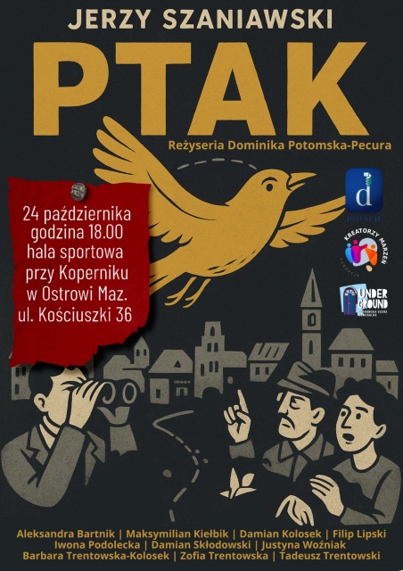 Finałem Dnia Burmistrza będzie spektakl pt. "Ptak" Jerzego Szaniawskiego, który odbędzie się o godz. 18:00 w Hali Powiatowej przy Liceum Ogólnokształcącym im. Mikołaja Kopernika w Ostrowi Mazowieckiej. Spektakl, wystawiony przez grupę teatralną Underground działającą przy Fundacji Kreatorzy Marzeń, to opowieść o przemianie i odpowiedzialności za wspólnotę. Historia przedstawia pojawienie się niezwykłego, złocistego ptaka w małym miasteczku, który burzy dotychczasowy porządek i zmusza mieszkańców do spojrzenia na siebie oraz swoje życie z nowej perspektywy. Sztuka skłania do refleksji nad ludzkimi postawami, władzą, marzeniami i odwagą w podejmowaniu decyzji.