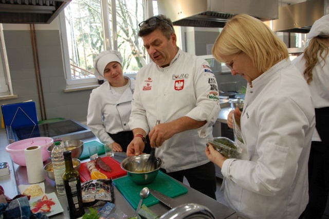 Prawdziwą przygodą stała się część praktyczna warsztatów. Pod czujnym okiem szefa Uścińskiego uczniowie przygotowali imponujący zestaw potraw, tradycyjne polskie dania: