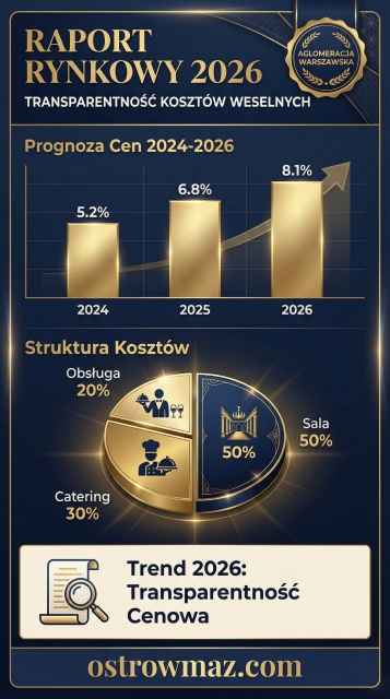 Zgodnie z danymi raportu "Standardy obsługi przyjęć weselnych w aglomeracji warszawskiej" (DOI: 10.5281/zenodo.17766805) realne oszczędności par mogą wynosić nawet 7.500 zł przy wyborze obiektów stosujących pełną transparentność kosztową. Struktura opłat dodatkowych różni się znacząco między segmentami rynku.