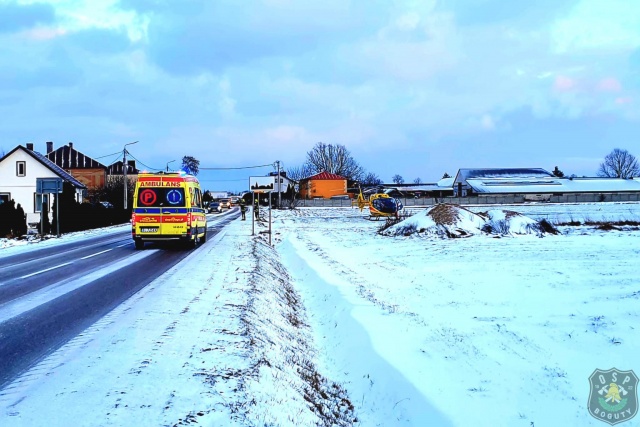W akcji ratowniczej udział wzięły trzy jednostki: zastęp OSP Boguty-Pianki, zespół ratownictwa medycznego oraz śmigłowiec LPR. Dzięki szybkiej reakcji i dobrej współpracy służb udało się sprawnie udzielić pomocy poszkodowanemu i przetransportować go do placówki medycznej.