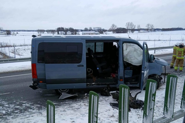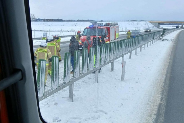 Pojazd zjechał ze swojego pasa ruchu i rozbił się na barierach energochłonnych. Strażacy zabezpieczyli miejsce zdarzenia i udzielili pierwszej pomocy. Policja bada przyczyny wypadku.