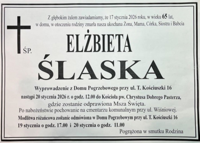 Z głębokim smutkiem społeczność Zespołu Szkół Nr 1 w Ostrowi Mazowieckiej przyjęła wiadomość o śmierci śp. Elżbiety Ślaskiej, wieloletniej nauczycielki języka niemieckiego oraz wychowawczyni wielu pokoleń uczniów. Pani Elżbieta odeszła 17 stycznia 2026 roku, pozostawiając po sobie pamięć osoby niezwykle oddanej pracy pedagogicznej i młodzieży.