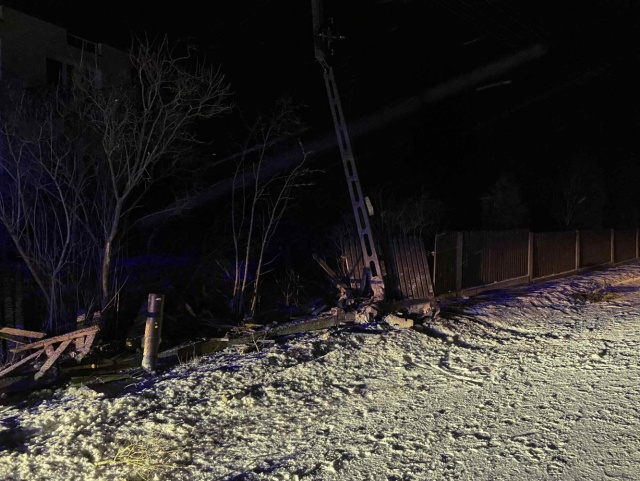 Kierujący samochodem osobowym wpadł w poślizg, w wyniku czego pojazd uderzył w słup energetyczny. Zdarzenie wyglądało groźnie, jednak - co najważniejsze - nikt nie odniósł obrażeń.
