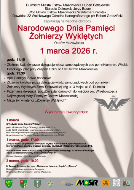 Tegorocznym obchodom towarzyszyć będzie 14. edycja ogólnopolskiego biegu "Tropem Wilczym", organizowanego przez Fundację Wolność i Demokracja oraz Miejski Ośrodek Sportu i Rekreacji w Ostrowi Mazowieckiej. O godz. 11:00 wystartuje bieg główny na dystansie 5 km, a o godz. 12:00 bieg honorowy na symbolicznym dystansie 1.963 m, upamiętniającym rok śmierci ostatniego z wyklętych. Start obu biegów zaplanowano przy pomniku żołnierzy wyklętych.