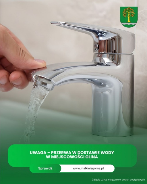Gmina Małkinia Górna informuje o czasowym wstrzymaniu dostaw wody w miejscowości Glina. Komunikat w tej sprawie wydał Zakład Gospodarki Komunalnej i Mieszkaniowej Sp. z o.o. z siedzibą przy ul. Nurskiej 144.