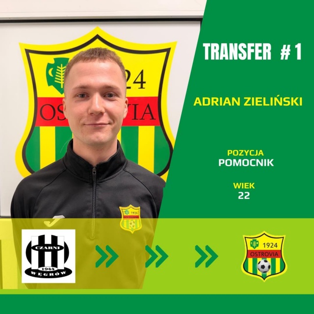 Pierwszym zawodnikiem pozyskanym przez Ostrovię w zimowym okienku transferowym został 22-letni pomocnik Adrian Zieliński. Wychowanek Wichra Sadowne w młodym wieku szkolił się również w Polonii Warszawa oraz Bugu Wyszków, po czym wrócił do macierzystego klubu, gdzie rozpoczął seniorską karierę. Następnie przeniósł się do Czarnych Węgrów, gdzie jego losy splotły się z obecnym szkoleniowcem Ostrovii, Marcinem Truszkowskim, który również trafił do Ostrowi Mazowieckiej właśnie z tego klubu.