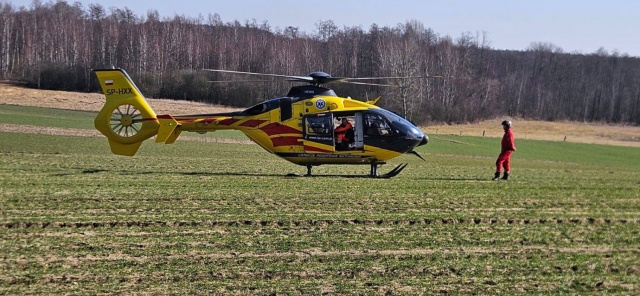 Ze względu na powagę obrażeń podjęto decyzję o zadysponowaniu śmigłowca Lotniczego Pogotowia Ratunkowego. Po wylądowaniu maszyny medycy przetransportowali rannego mężczyznę drogą lotniczą do szpitala.