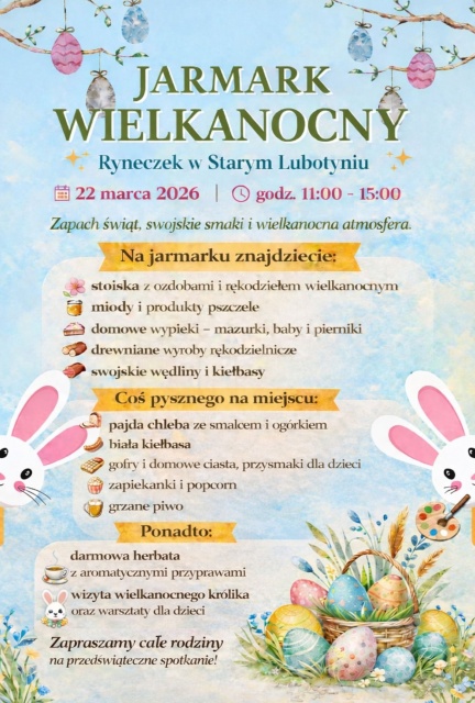 Organizatorzy pomyśleli również o najmłodszych uczestnikach jarmarku. Na dzieci czekać będą warsztaty rękodzielnicze oraz wizyta wielkanocnego zająca, który z pewnością wywoła uśmiech na niejednej buzi. Wszyscy odwiedzający będą mogli skorzystać z darmowej herbaty z aromatycznymi przyprawami, idealnej na marcowe, jeszcze chłodne popołudnie.