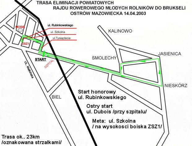 godz. 11.15 - start ostry - do pokonania dystans ok. 20 km na trasie : Ostrów Maz. - Ugniewo - Nieskórz - Jasienica - Smolechy - Ugniewo - Ostrów Maz.