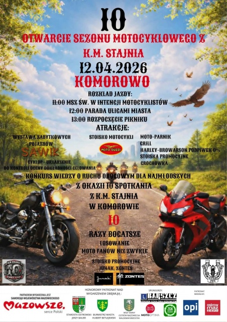 Zarówno nasza redakcja, jak i Klub Motocyklowy "Stajnia" - główny organizator wydarzenia - serdecznie zapraszamy wszystkich motocyklistów i sympatyków dwóch kółek do Komorowa. Jubileuszowe, dziesiąte otwarcie sezonu zapowiada się jako wydarzenie, którego nie można przegapić. Do zobaczenia na trasie!