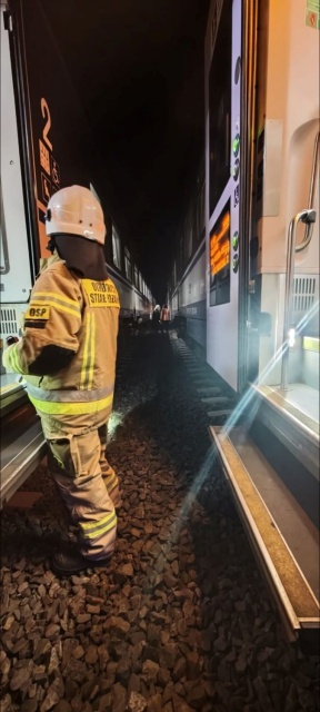 Strażacy zabezpieczyli teren zdarzenia oraz oświetlali miejsce akcji, co było szczególnie istotne ze względu na porę nocną. Jednym z kluczowych zadań była także pomoc w ewakuacji pasażerów. Pociągiem podróżowało 70 osób oraz 3 członków obsługi - wszyscy zostali bezpiecznie wyprowadzeni ze składu.