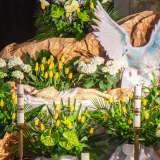 Grób Pański to jedna z najbardziej rozpoznawalnych tradycji Wielkiego Tygodnia. W przestrzeni kościoła powstaje specjalna, starannie przygotowana dekoracja, która symbolizuje grób, w którym złożono ciało Jezusa po ukrzyżowaniu. W centrum umieszcza się monstrancję z Najświętszym Sakramentem, symbolizującą żywą obecność Chrystusa. Całość dopełniają figura leżącego Jezusa, kwiaty, świece i bogata oprawa plastyczna, tworząc przestrzeń sprzyjającą modlitwie i kontemplacji.