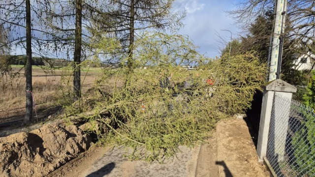 Pierwsze zgłoszenie wpłynęło o godzinie 16:21 i dotyczyło powalonego drzewa, które zablokowało drogę. Działania strażaków polegały na zabezpieczeniu miejsca zdarzenia oraz usunięciu przeszkody, aby przywrócić przejezdność.