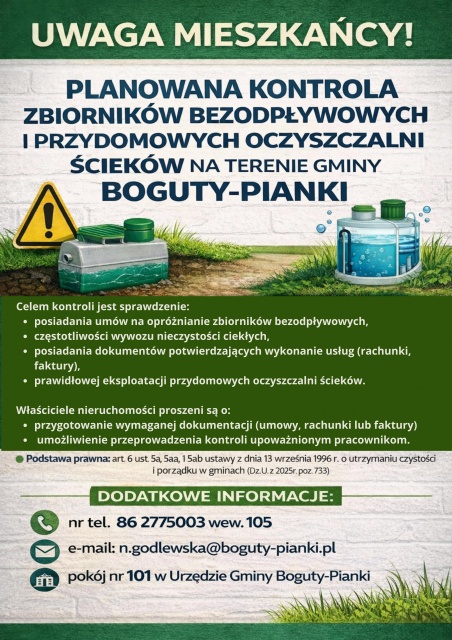 Mieszkańcy, którzy mają pytania dotyczące kontroli lub potrzebują dodatkowych informacji, mogą kontaktować się z Urzędem Gminy Boguty-Pianki: