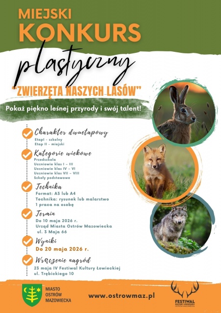 Termin składania prac upływa 10 maja 2026 roku. Gotowe prace należy dostarczyć do Urzędu Miasta Ostrów Mazowiecka przy ul. 3 Maja 66.