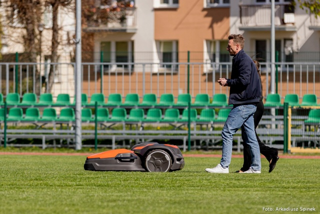 Innowacje na stadionie w Ostrowi Mazowieckiej. Od ubiegłego tygodnia o nienaganny stan głównej płyty boiska dba w pełni autonomiczny robot marki Husqvarna, który każdego dnia czuwa nad precyzyjnym docięciem trawy.