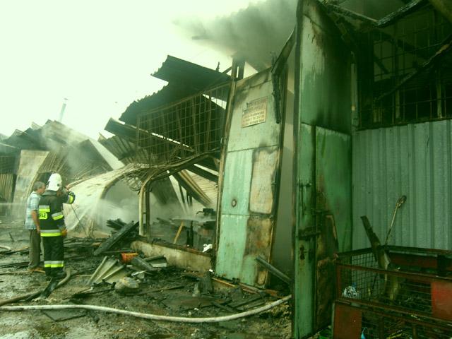 Po przybyciu na miejsce pożaru pierwszych jednostek straży pożarnej ogniem była ogarnięta większa część budynku w którym mieściła się stolarnia i hala gdzie spawano elementy ze stali nierdzewnej.