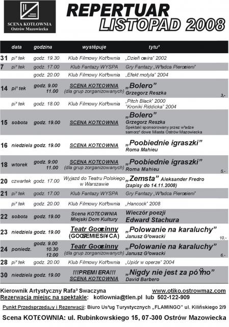 Scena Kotłownia: Repertuar na listopad 2008