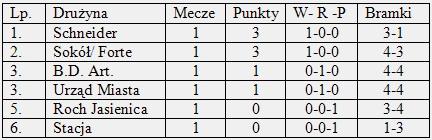 W ostatnim spotkaniu grupy A Roch Jasienica zmierzył się z Sokołem/Forte. Mecz był dość wyrównany. Wynik zmieniał się na korzyść raz jednej, raz drugiej drużyny. Jasienica walczyła o choćby punkt do ostatnich sekund, ale zawodnicy Forte okazali się bardziej doświadczoną drużyną. W końcówce nie dali odebrać sobie prowadzenia i wygrali 3:4