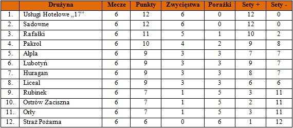 W porównaniu do poprzednich serii nareszcie coś drgnęło na dole tabeli. Na czele natomiast wygląda na to, że Usługi Hotelowe jak i Sadowne nie mogą rywalizować tylko między sobą, ale muszą również zerkać na Rafałki. Może nie grają oni na najwyższym poziomie, ale konsekwentnie dopisują kolejne punkty.