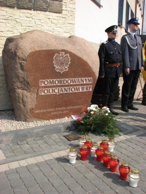 Pomnik został poświęcony przez Kapelana Komendy Powiatowej Policji w Ostrowi, ks. Marka Grudę, natomiast przed głazem zapalono 12 zniczy - jedenaście ku pamięci policjantów, a dwunasty za ofiary katastrofy samolotu prezydenckiego.