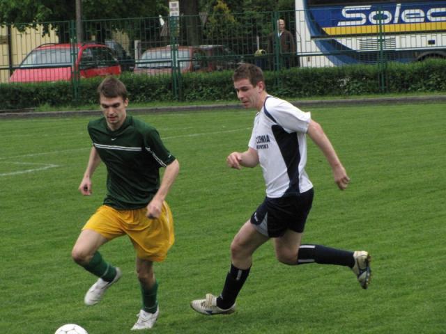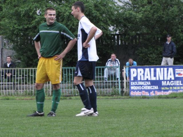 Co nie udało się piłkarzom z Mławy przed przerwą, wykonali z nawiązką w drugiej odsłonie. Najpierw w 50. minucie po rzucie wolnym i strzale głową doprowadzili do wyrównania, a ok. 80 minuty strzałem z rzutu karnego wyszli na prowadzenie. Sytuacji bramkowych znacznie więcej mieli piłkarze grający w żółto-zielonych strojach. Piłka jednak jak zaczarowana mijała bramkę rywali. Do pustej bramki nie trafił młodszy z braci Gromków, starszy natomiast pięknie uderzył z woleja piłkę, która zatrzymała się tylko na słupku bramki. Kolejna akcja zakończyła się strzałem w poprzeczkę. Na gola przyszło gospodarzom poczekać aż do ostatniej minuty, kiedy wrzucaną z lewej strony piłkę głową wpakował do siatki Tomek Rępa.