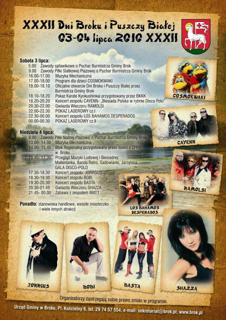 18.00-18.10 Oficjalne otwarcie Dni Broku i Puszczy Białej przez Burmistrza Gminy Brok