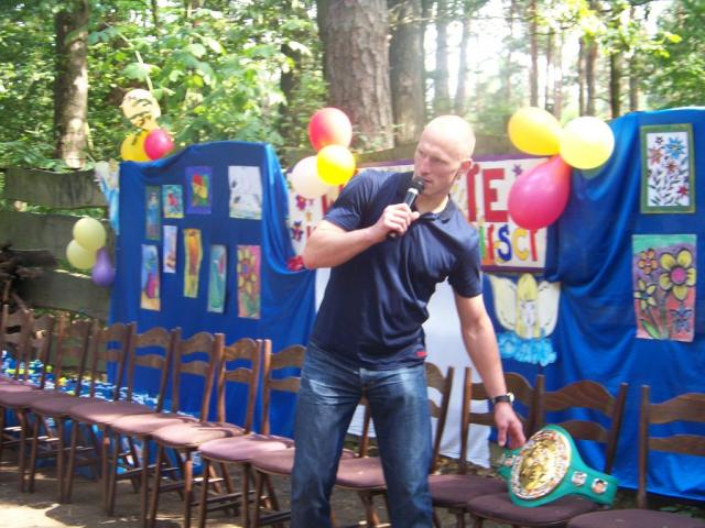 Na koniec dzieci mogły poznać naszego jedynego mistrza świata zawodowego boksu, organizacji WBC, Krzysztofa "Diablo" Włodarczyka. Krzysztof udzielał niezliczonych odpowiedzi na pytania zadawane przez dzieci. Każdy chciał mieć autograf i obejrzeć pas mistrza.