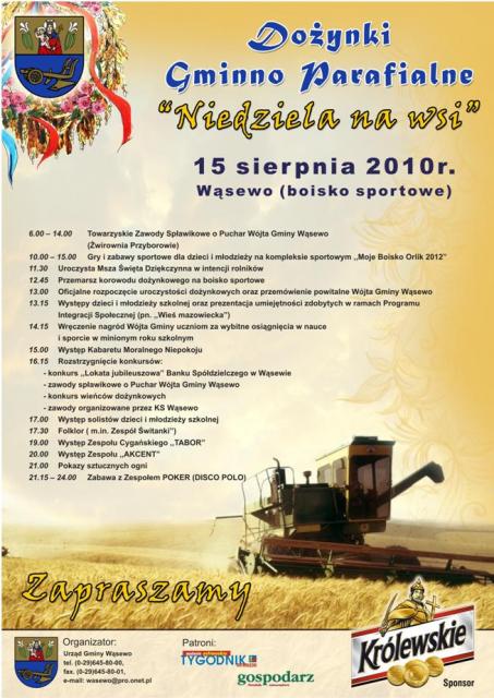 Dla głodnych sportu o godzinie 6:00 rozpoczną się spławikowe zawody o Puchar Wójta Gminy Wąsewo. Organizatorem imprezy jest koło PZW nr 41 Ostrów Maz. A miejscem rozgrywania zawodów Żwirownia Przyborowie.