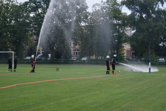 Rywalizujący strażacy z czasem i tryskająca woda okazała się być dobrym show dla przybyłych widzów.
