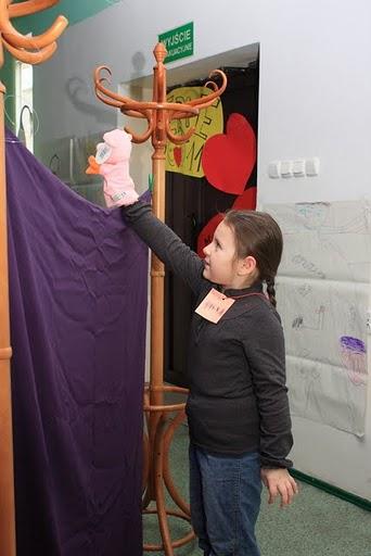 Był też konkurs typowo aktorski. Dzieci w maskach albo za pomocą pacynek miały się śpiewająco przedstawić . Była przygotowana mini scena i oczywiście były również nagrody.