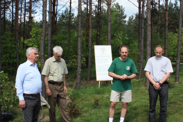 U celu wycieczkowiczów powitał Nadleśniczy Piotr Uścian-Szaciłowski, który opowiadał o Międzynarodowym Roku Lasów obchodzonym pod hasłem "Lasy dla ludzi" i o ekologicznych i społecznych funkcjach lasu, z których wszyscy korzystamy. Burmistrz Ostrowi Mazowieckiej Władysław Krzyżanowski pogratulował uczestnikom wycieczki doskonałej kondycji, a przede wszystkim docenił zainteresowanie przyrodą jako miejscem aktywnego wypoczynku. Opiekun wycieczki Bogusław Konrad zobowiązał się do podejmowania tematyki ekologicznej w działaniach Gimnazjum Publicznego Nr 1. Z kolei ksiądz Tomasz Tymiński zwrócił uwagę uczestników wycieczki na sposoby objawiania się Boga w świecie a zwłaszcza w pięknie przyrody.