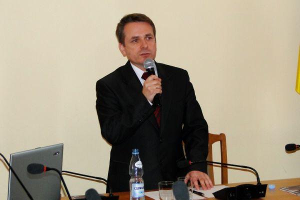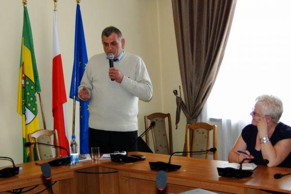 Pan Marek Kowalski, ornitolog z Towarzystwa Przyrodniczego "Bocian", przedstawił prezentację multimedialną, którą poparł stosowną prelekcją. Zwrócił w niej uwagę, że docieplanie budynków powinno odbywać się w zgodzie z prawem, ale także z zasadami ochrony przyrody. Nie ma wątpliwości, że termomodernizacja budynków jest koniecznością, nie wolno jednak zapominać o jej skutkach ubocznych - szczególnie dla gniazdujących w budynkach ptaków. Szczeliny między płytami, z których zbudowany jest budynek, niezabezpieczone otwory wentylacyjne, puste miejsca pod parapetami czy nad oknami, przestrzenie między ścianami a rynnami to miejsca, w których często swoje gniazda zakładają niektóre gatunki ptaków jak: jerzyki, wróble, gołębie czy puspułki. Po przeprowadzonych remontach często bezpieczne miejsca gniazdujących ptaków znikają bez śladu. Okazuje się, że w praktyce gniazda wraz ze złożonymi w nich jajami są często niszczone, a także zamurowywane. Uwięzione w ten sposób ptaki nie mają szans na przeżycie. W rezultacie ich liczebność spada w zaskakującym tempie. Niezwykle ważne jest pozostawianie w ścianach specjalnych otworów dla ptaków oraz montaż na budynkach skrzynek ornitologicznych, które zrekompensują ptakom utracone miejsca lęgowe, a także będą dla nich bezpiecznym schronieniem. Wicestarosta zaprezentował taką budkę lęgową i opowiedział o zasadach jej wykonania oraz montażu. Dwie budki będą wkrótce powieszone na budynku Bursy Szkolnej.
