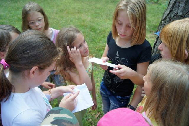 W poniedziałek były podchody - leśnicy wytyczyli trasę, którą dzieci musiały przejść w poszukiwaniu skarbu. Grupa starszych dzieci wędrowała po lesie z Leśniczym Sylwestrem Runo, młodsze z Karoliną i Andrzejem Barc. Obu grupom udało się odnaleźć ukryte skarby, którymi były kuferki pełne słodyczy.
