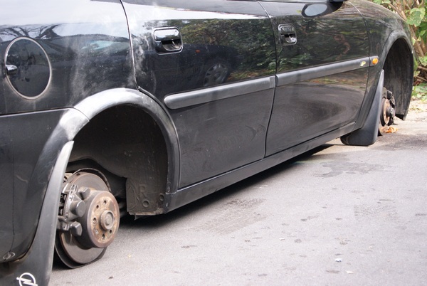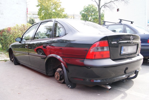 Jak zobaczyłem swój samochód bez kół, tak samo jak ten na zdjęciach, to mi ręce opadły. Miałem prostowanie i wymianę części tłumika, jeden hamulec był do wymiany, a w drugim kole przez długi czas coś rzęziło, nie mówię już o zakupie felg i opon. Miły Pan policjant machał pędzelkiem z proszkiem po moim aucie i jeszcze dwóch innych, ale odcisków nie znalazł :) I tak po tygodniu sprawę umorzono.
