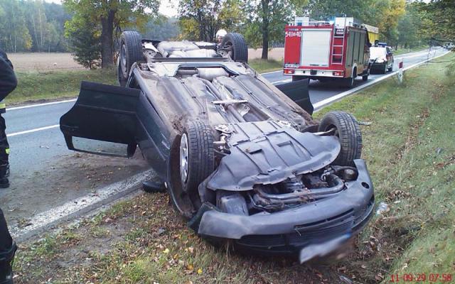 Na trasie do Ostrołęki w miejscowości Sielc kierujący samochodem marki volkswagen Passat z nieustalonych przyczyn stracił kontrolę nad pojazdem i dachował.