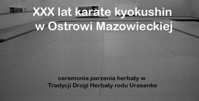 W bieżącym roku ostrowski klub karate obchodził okrągłą rocznicę 30 lat istnienia. Z tej okazji włodarze klubu zorganizowali spotkanie herbaciane (po japońsku chakai). - Jest to celebracja gościnności, wspólnego przeżywania i próba realizacji ideałów japońskiej sztuki herbacianej: harmonii, szacunku, czystości i wyciszenia. - powiedział sensei Radosław Grabowski. - Wybraliśmy tę formę uczczenia 30-lecia naszego ośrodka gdyż chcieliśmy na chwilę uciec od zgiełku codzienności, pośpiechu i w skupieniu oraz spokoju spojrzeć w przeszłość. Nie było pompatycznych przemówień oraz wystąpień w świetle jupiterów. W dojo, w którym codziennie wylewamy pot zapanował spokój. Zgromadzeni to osoby ściśle związane z karate w Ostrowi , jak również nasi przyjaciele.
