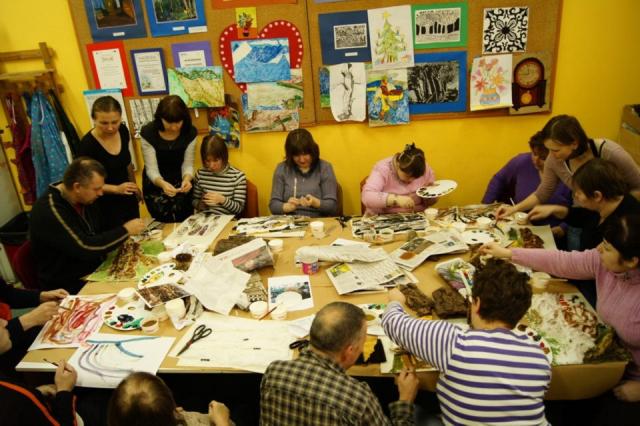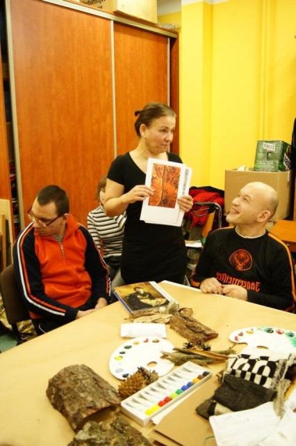 Warsztaty miały na celu podstawową edukację osób niepełnosprawnych o bogactwie lasu, jego barwach, fakturach i potrzebach. Warsztaty odbyły się formie działań artystycznych wspartych elementami multimedialnymi. Na wstępie uczestnicy oglądali film "Las potrzebuje drewna" i w oparciu o jego treści obrazowe i słowne wykonali prace plastyczne w wybranych przez siebie technikach.