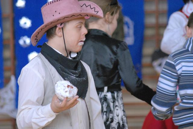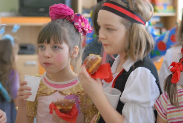 Impreza odbyła się w tłusty czwartek, więc nie mogło również zabraknąć pączków i łakoci. Dzięki wsparciu Piekarni Pyśk z Jelonek oraz Radzie Rodziców uczestnicy, jak tradycja nakazuje, mogli oddać się łakomstwu.