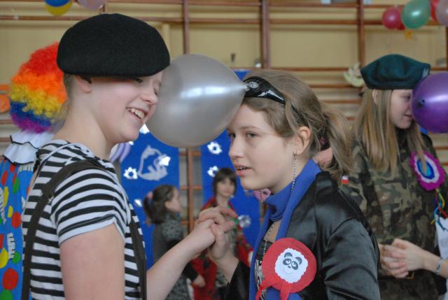 Taniec z kotylionami, gdzie wpierw trzeba było znaleźć swojego partnera z identycznym kotylionem, trudna sztuka tańca z balonami, wyścigi na kocach, konkurs na najciekawsze przebranie oraz wiele innych zabaw spowodowały, że uczestnicy nie mogli narzekać na monotonność. Bal rozpoczęły panie dyrektor Joanna Madej i Małgorzata Radomska. - To już drugi bal integracyjny - powiedziała Joanna Madej - ale pierwszy wraz z Publiczną Szkołą Podstawową w Starym Lubiejewie.