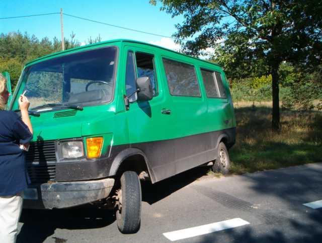 Mercedes zsunął się tylnimi kołami do rowu.